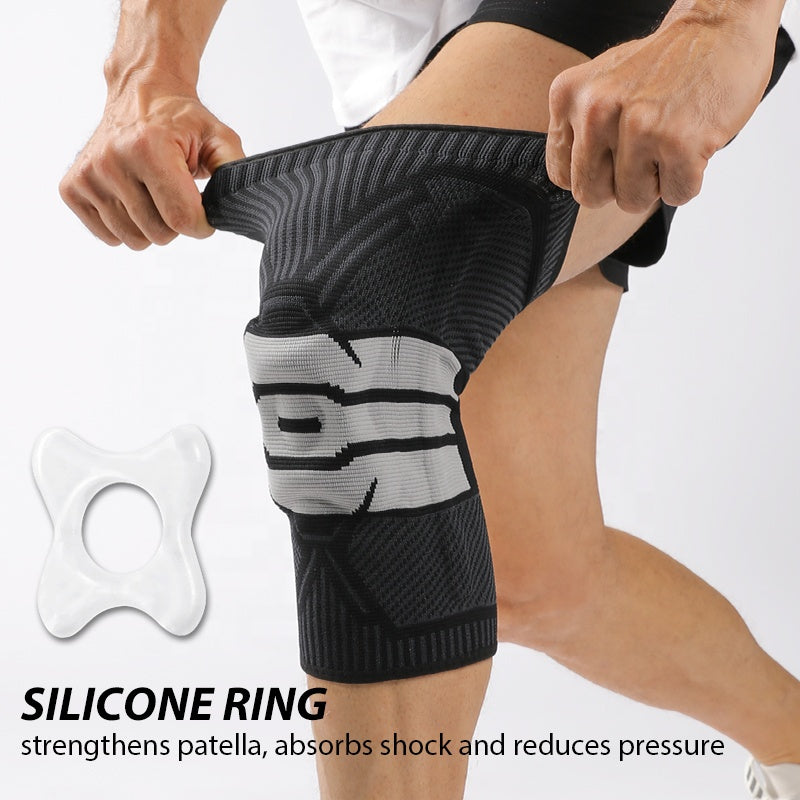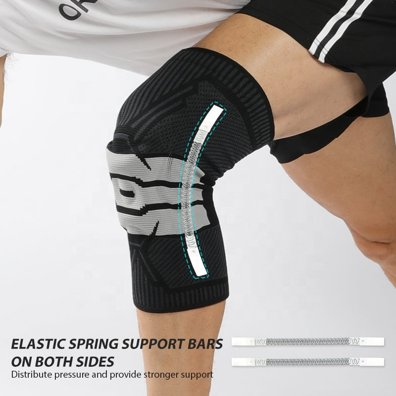Compression Knee Sleeve with Patella Gel Pad and Stabilizing Spring for Protection